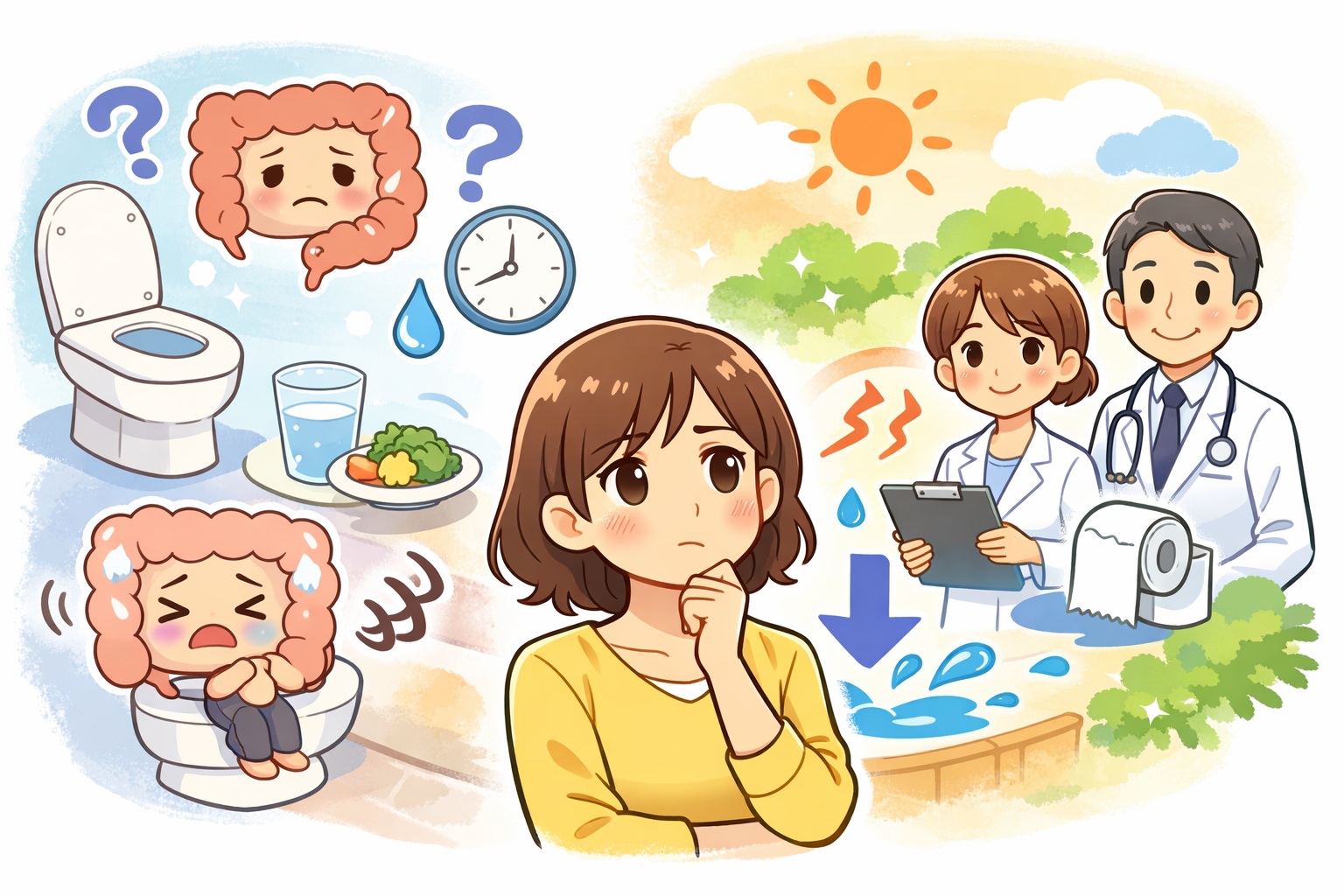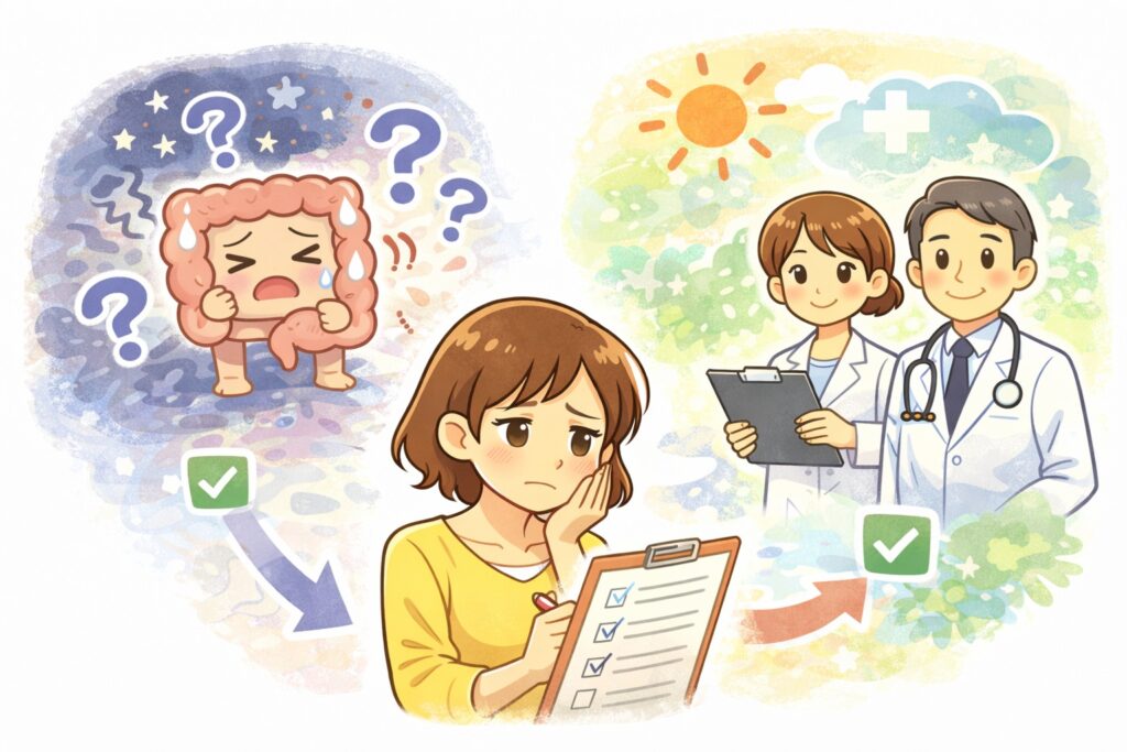 便秘と下痢の揺れは、腸のコンディション・便の状態・生活リズム・薬の種類や量など、いくつもの要素が絡み合って起こることがあります。
