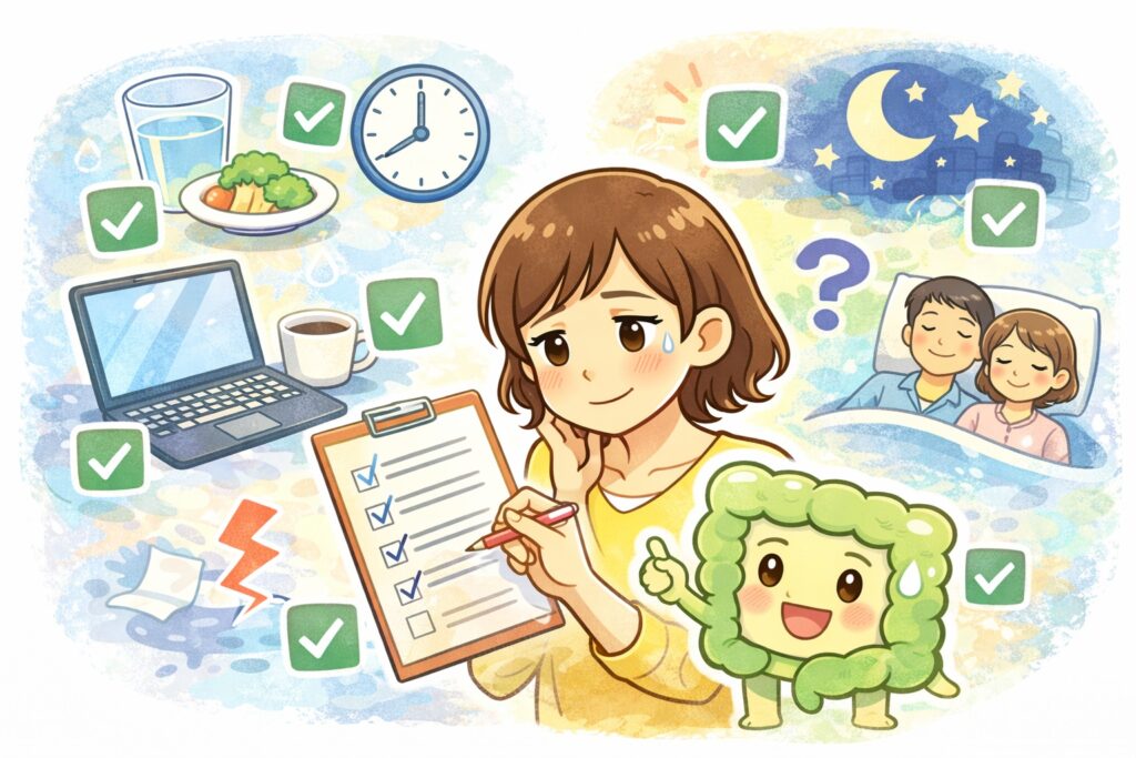 ※本記事は一般的な腸活・便秘改善情報の提供を目的としており、診断・治療を代替するものではありません。妊娠中・持病・薬を服用中の方は、必ず医師や薬剤師など専門家にご相談ください。