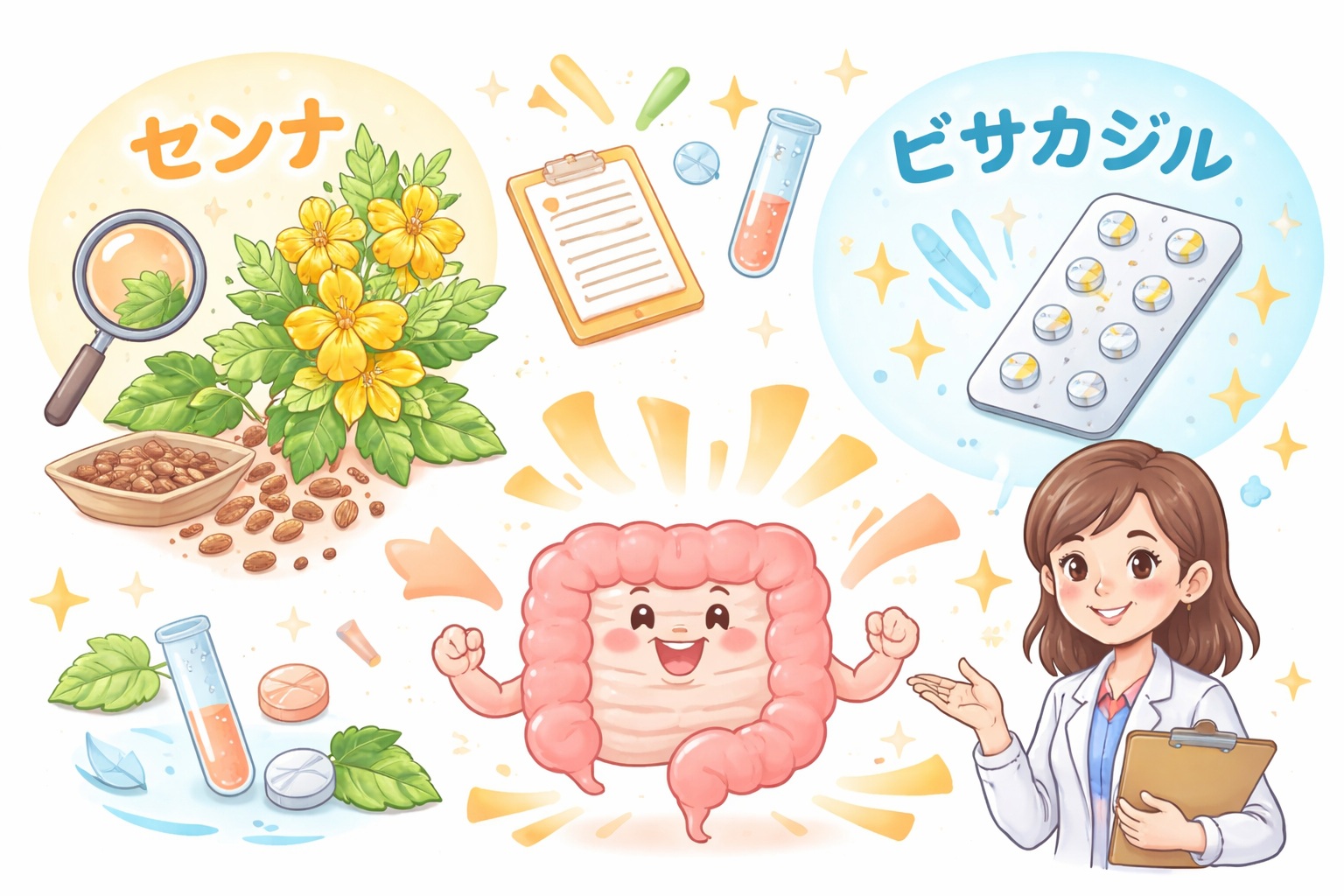 センナとビサコジルという刺激性成分について、